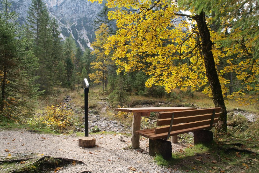 Direkt an der Talstation Ehrwalder Alm beginnt der schöne und leicht begehbare Erlebnispfad mit verschiedenen Spielstationen zum Thema Wasser, Infotafeln, Ruheliegen und einem Aussichtspunkt zum Seebenwasserfall. Der Rückweg verläuft durch den "Geisterwald" und die Mähder zurück zur Talstation.