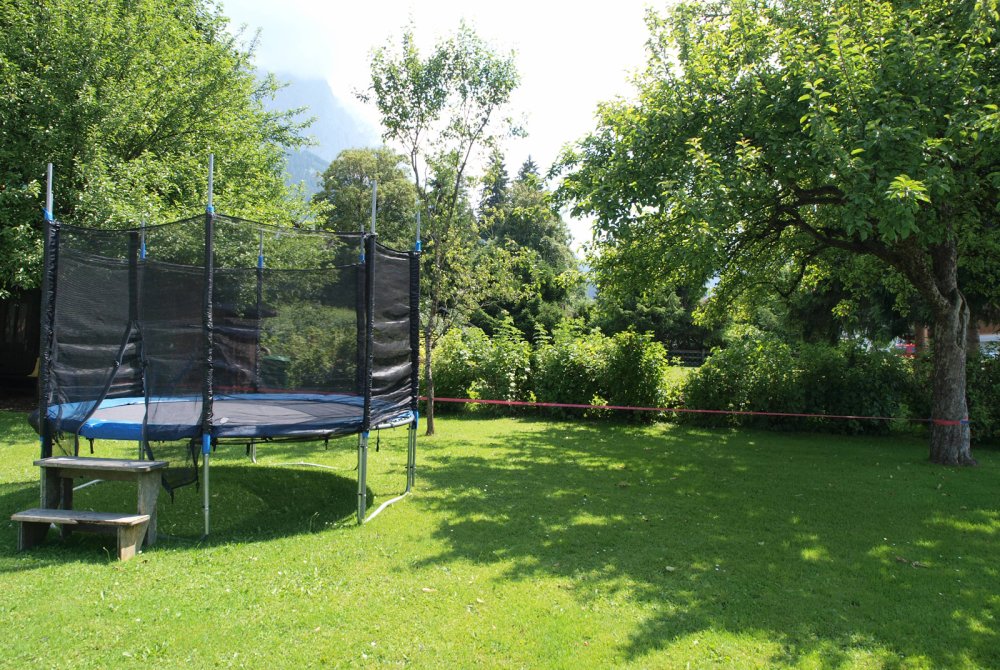- einem abgetrenntem großzügigem Spielbereich mit Trampolin, Tischtennis, Sandkasten, Spielhaus, Fußballtoren, u. v. m.